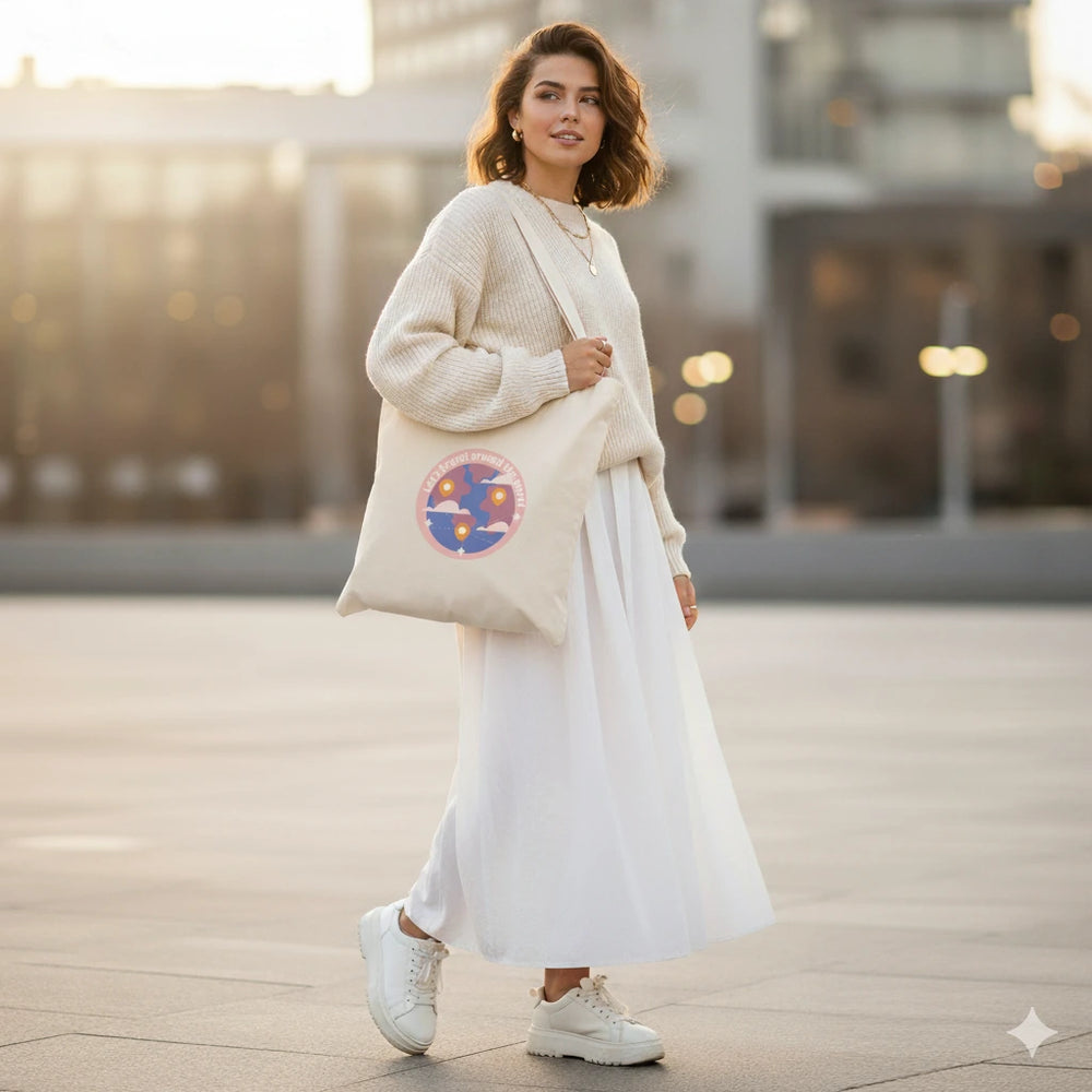Let’s Travel Tote Bag – Stylish Canvas Shoulder Bag for Women
