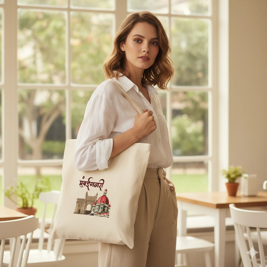 Mumbai Nagri Cotton Tote Bag | Eco-Friendly Printed Canvas Bag